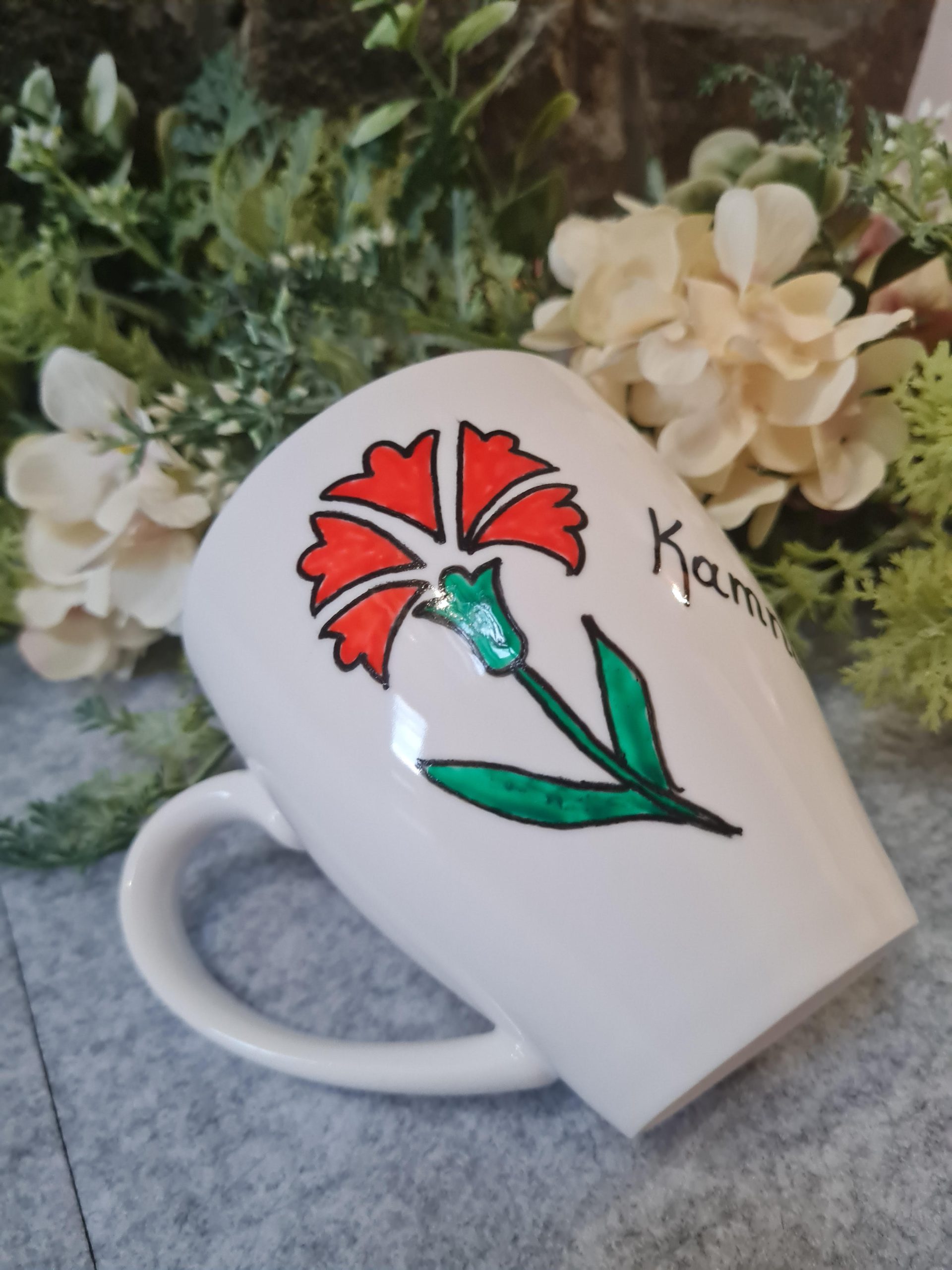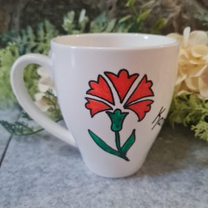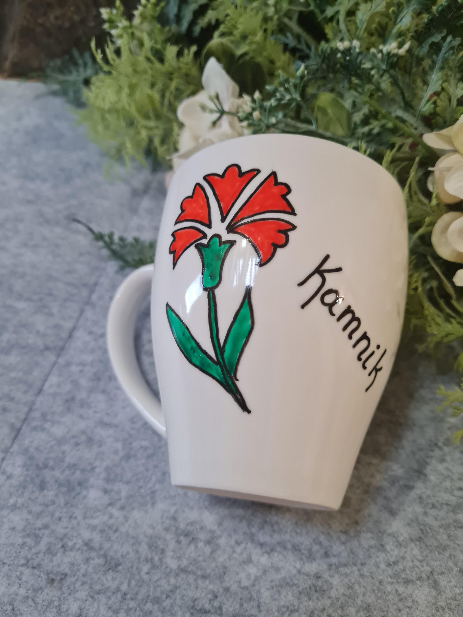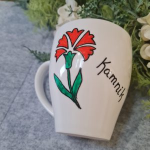 Skodelica je lahko namenjena kot poslovno darilo, darilo za v tujino ali rojstni dan. Na keramični skodelici je narisan nagelj, zraven se lahko dopiše še mesto, državo ali pa mogoče ime podjetja.